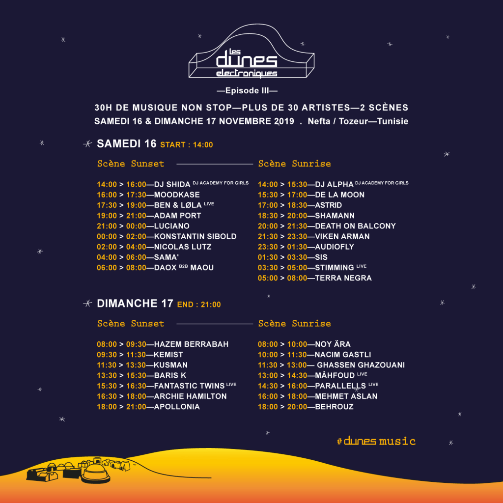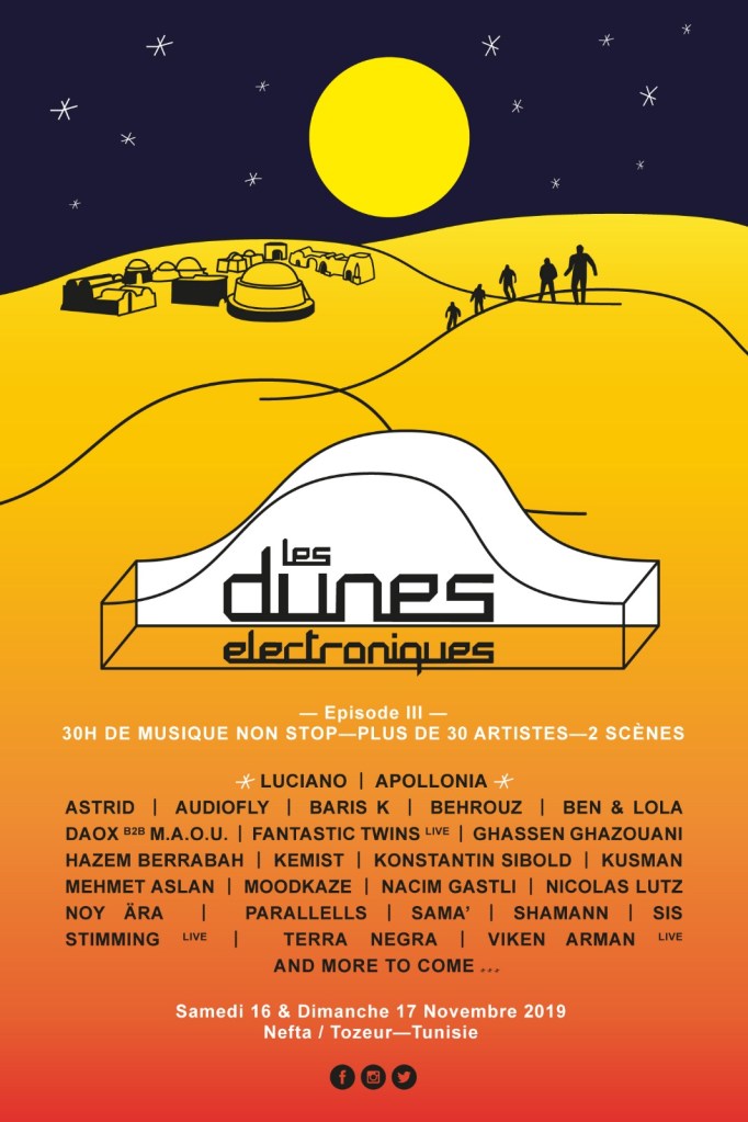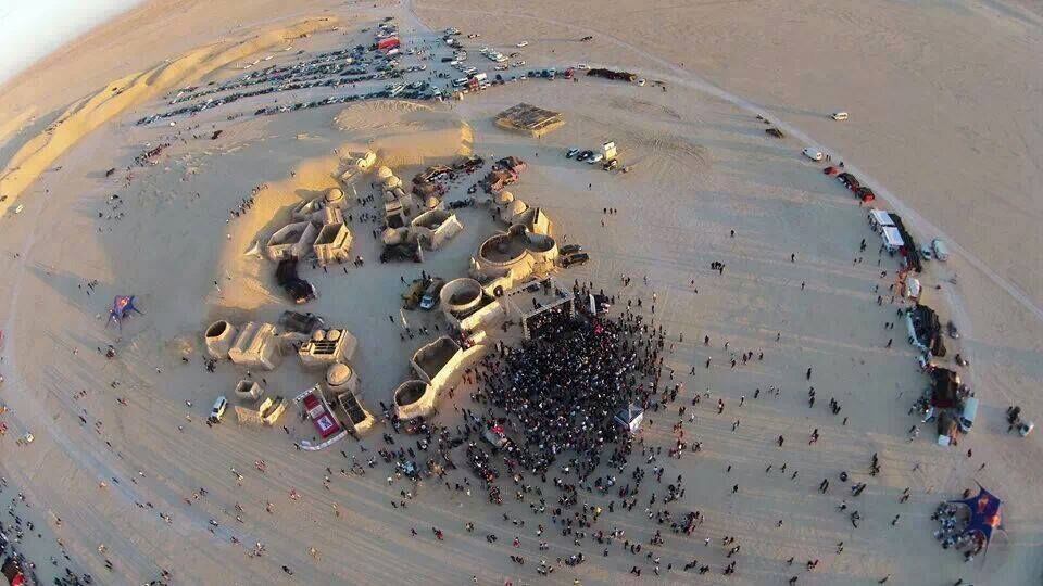 Enfin, et c’est certainement le projet de recyclage des décors qui a le plus d’envergure à ce jour, le Festival des Dunes Électroniques se déroule sur le site des décors de Nefta. L’évènement fut créé au milieu des années 2010 par Ali Patrick El Ouarghi et Philippe Chapelet, entrepreneurs hôteliers à Nefta. Des milliers de festivaliers se sont rassemblés lors des diverses éditions autour de la musique électronique et de stands venus s’installer autour des décors de Star Wars : ambiance garantie ! Et les choses ont été faites en grand pour attirer une clientèle également venue d’Europe ! Attention, on commence même à comparer ce festival dans le désert au Burning Man des Etats-Unis ! C’est dire si le phénomène est apprécié et prend de l’ampleur au fil des éditions même si la prochaine date se fait attendre ! Dans tous les cas, c’est une très belle initiative qui permet de mettre en valeur le site de Nefta, de le faire vivre et perdurer dans le temps. Et de mettre également en avant la saga à travers la promotion de l’évènement et l’identité starwarsienne tunisienne !