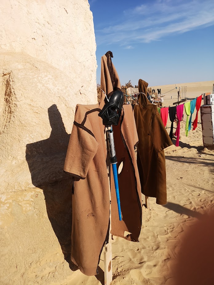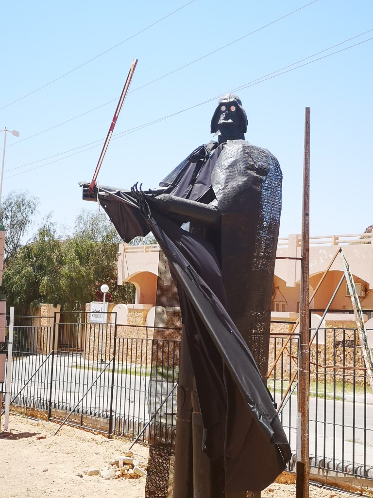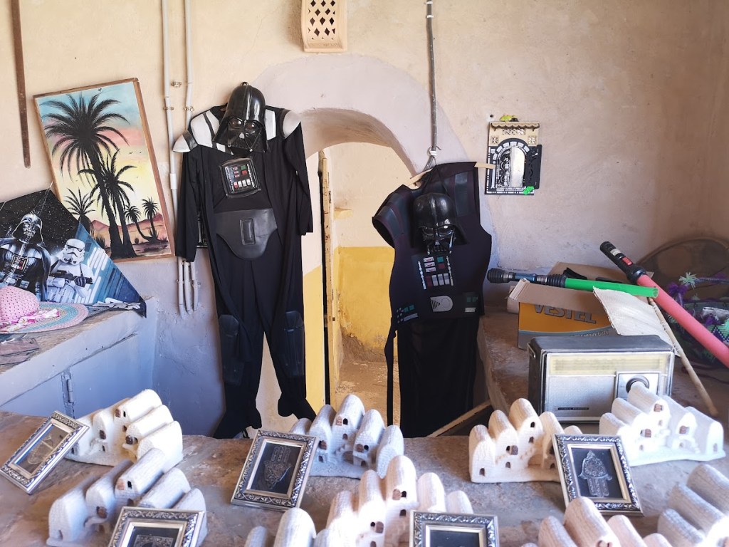 La Ville de Tataouine, qui a donné son nom à la planète désertique, mais qui n’a pas abrité de tournage ni en 1976 ni en 1997, surfe toutefois sur la tendance Star Wars. Une habitation en particulier, sur la route qui sort de la ville pour se rendre à Chénini, expose de manière permanente des sculptures métalliques de personnages (et même Yoda qui n’est apparu qu’en 1980 et qui n’a jamais posé le pied sur Tatooine dans la saga).