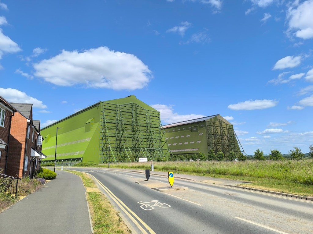 Peut-ĂȘtre ĂȘtes vous d’ailleurs dĂ©jĂ tombĂ©s sur cette image surprenante et saugrenue…prise Ă Cardington en 2016 dans des hangars qui ont Ă©tĂ© nettement rĂ©novĂ©s et repeints en vert quelques annĂ©es auparavant ?
