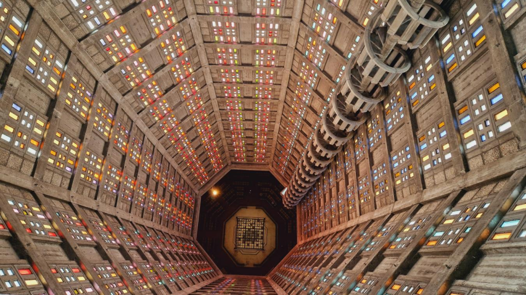 Je pense que Luke Hull s’est tout simplement déplacé au Havre car la cité reconstruite en béton armé par Perret est une ville où prédomine l’architecture brutaliste, très recherchée dans la série ! Impossible de ne pas l’imaginer s’être rendu sous la tour-lanterne de l’Eglise Saint Joseph et ses vitraux aux multiples rayons colorés qui pourraient provenir d’une galaxie lointaine…