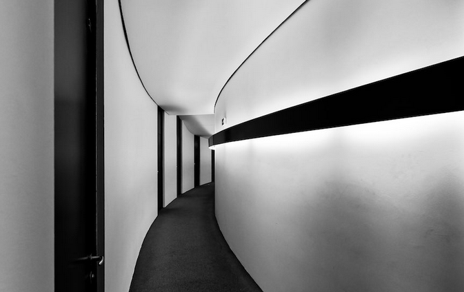 Nous sommes ici face à un immeuble d’habitations…au sein d’un quartier d’affaires et de gratte-ciels français ! Drôle d’histoire que ces appartements collectifs d’ailleurs : ils appartiennent à un ensemble immobilier dénommé Les Damiers qui se répartissent sur 4 immeubles à la forme identique mais de tailles et volumes différents, dans un secteur de la Défense appelé « Saisons » sur la commune de Courbevoie : Les Damiers d’Anjou (110 logements sur 12 étages), les Damiers de Bretagne (90 logements sur 12 étages également), les Damiers de Champagne (222 logements / 18 étages) et enfin les Damiers de Dauphiné (224 logements / 23 étages). C’est donc un ensemble d’environ 650 logements qui ont été construits par les architectes Jacques Binoux, Michel Folliasson et Abro et Henri Kandjian, père et fils, inaugurés en 1976 et 1978 qui ont fait venir Luke Hull sur place.