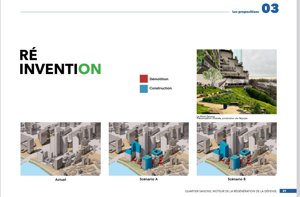 Bref, en 2025, l’EPADESA confirme que le secteur sera réaménagé mais non pas pour le projet Hermitage Plaza qui semble bel et bien abandonné. Il est donc possible que les deux résidences vidées (Bretagne et Anjou) soient réhabilitées et des réflexions sont actuellement menées pour que la dalle béton sur laquelle repose une bonne partie du quartier de la Défense soit démolie à cet endroit pour retrouver l’accès au sol (c’est pas beau tout ça ?). Si le projet vous intéresse, cliquez sur le lien ci-dessous !