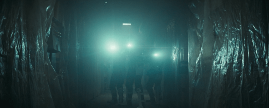 Autre remarque : dans le dernier épisode, au fur et à mesure que les impériaux se rapprochent de la planque, il semblerait que l’étage ou tout au moins une partie du couloir qui mène à l’appartement où se cachent nos héros, soit abandonné ou en travaux. Notamment au regard des bâches qui viennent recouvrir les murs du couloir. Tout laisse à croire qu’il y aurait, à l’intérieur même de l’immeuble, une partie totalement abandonné par les habitants…ce qui tend à renforcer le parallèle avec les Damiers.
