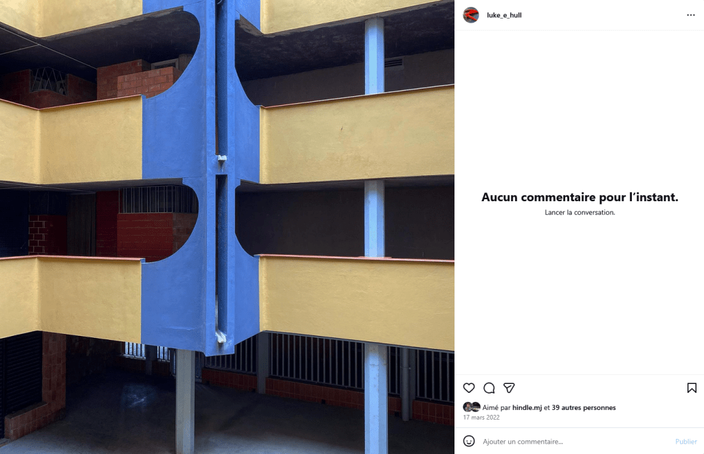 Le lendemain de la photographie postée au Havre, Luke Hull va republier la photographie d’un autre site visité, cette fois-ci en Île-de-France.