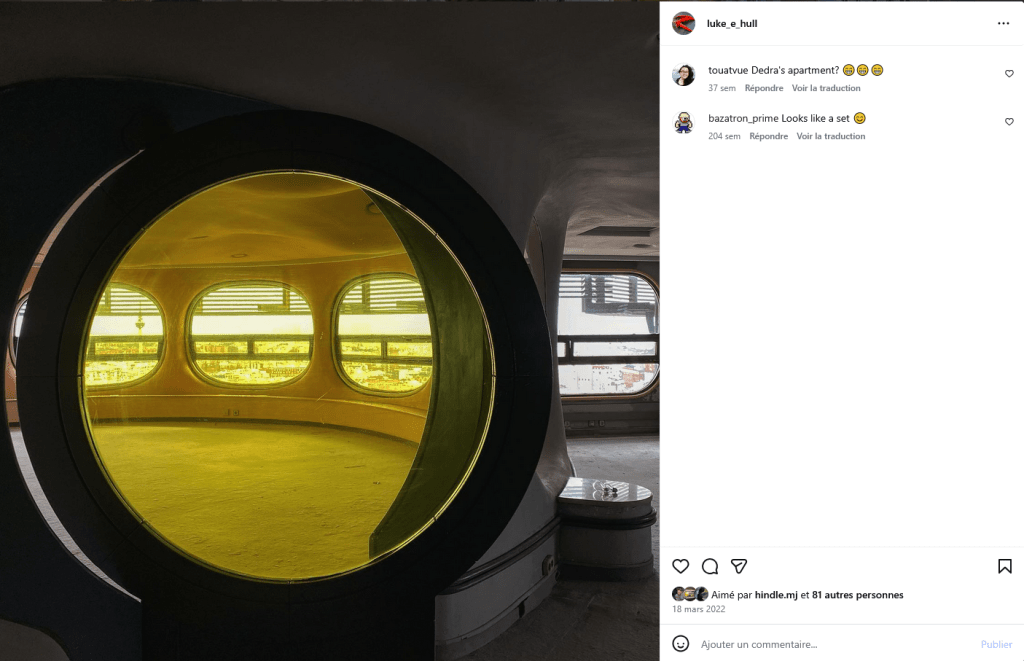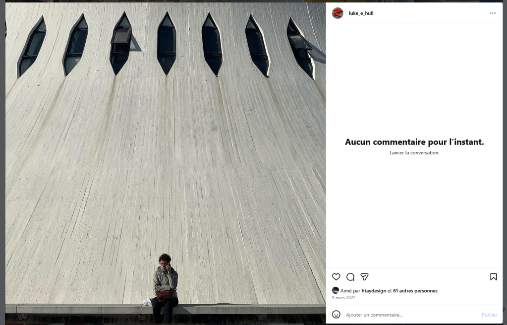 Et si je vous disais que durant ses repérages de la saga, Luke Hull a visité la France…et particulièrement la région parisienne…mais pas que ! En effet, on va d’abord retrouver Le Havre parmi ses points de passage, haut lieu de l’architecture de la Reconstruction d’après-guerre autour de son maître architecte, Auguste Perret, même si c’est une construction un peu plus contemporaine qui apparaitra photographiée sur son fil Instagram et postée le 09 Mars 2022.