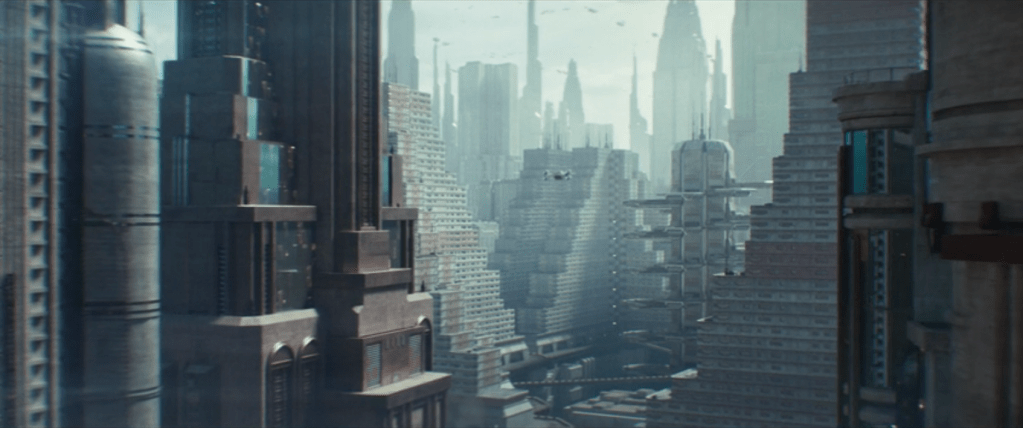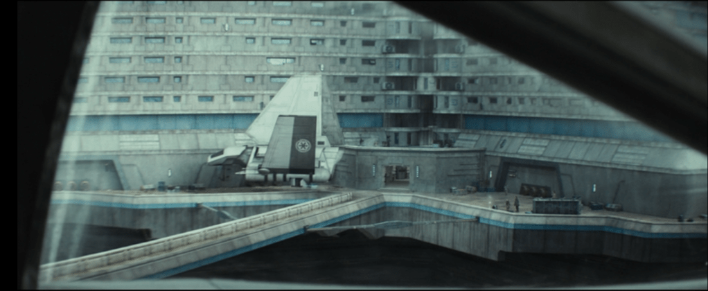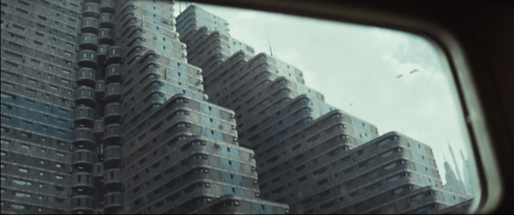 Ce qui a intéressé avant tout le chef décorateur d’Andor reste, je pense, l’immeuble collectif et les unités d’habitations au milieu des tours de bureaux. Pourquoi ? Tout d’abord l’architecture en gradins et sur dalle : c’est quelque chose que l’on va retrouver énormément dans la seconde saison notamment avec les scènes sur Coruscant où se retrouvent Bix et Andor. Souvenez-vous, nombre de ces scènes ont été tournées aux mêmes endroits que la saison 1, à savoir l’un des grands ensembles de l’architecture brutaliste de Londres : Le Barbican Centre !