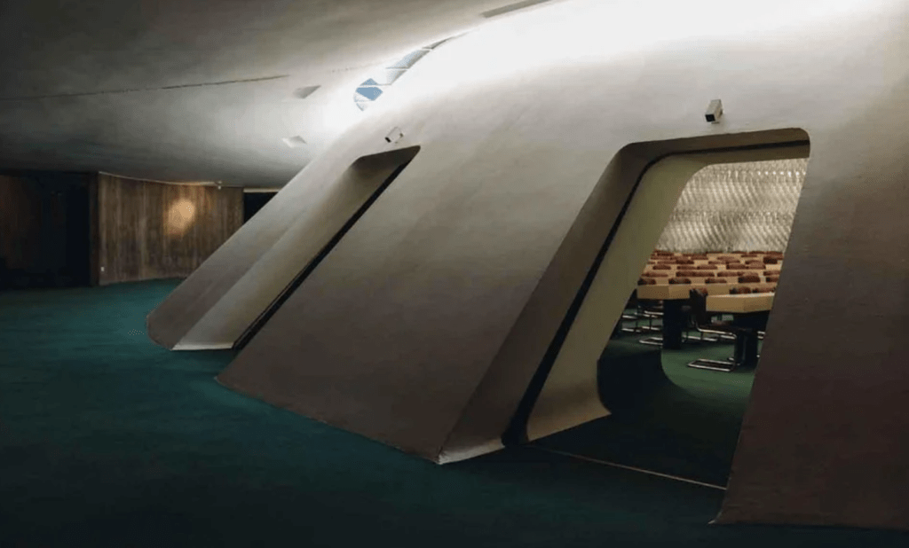 Les quelques parallèles entre le dénommé « Espace Niemeyer » du siège du PCF à Paris et celui du BSI sur Coruscant.
